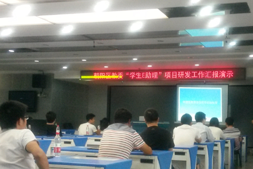 9月18日,在北京朝陽教委 “學生E助理”項目研發工作匯報演示廳中,由無線寬帶網絡事業部為其架設、部署了無線網絡,保證了匯報演示過程中后臺服務器與終端的穩定